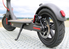 5. Тормозная система. Электрические самокаты обладают дисковым или электрическим тормозом. Первый способен эффективно гасить высокую скорость, но требует регулярного обслуживания. Второй не может быстро осуществить остановку, но во время эксплуатации слегка подзаряжает батарею и не нуждается в обслуживании. Еще можно тормозить задним крылом нажатием на него ногой. Это дополнительный способ торможения.