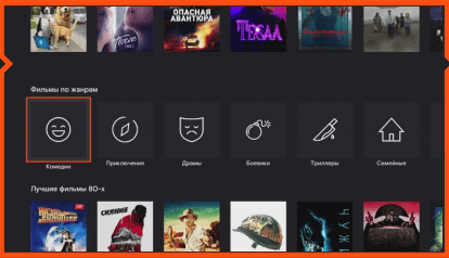 Для быстрого перехода к любимым жанрам фильмов и сериалов в Wink имеется специальная полка на соответствующих витринах, чтобы быстро перейти в каталог VOD контента с нужной тематикой