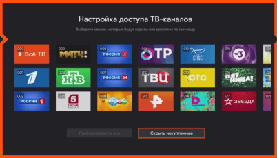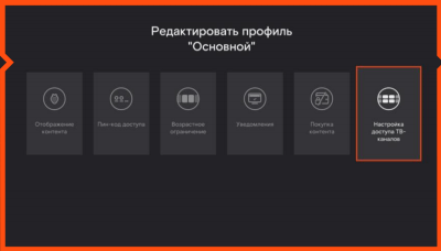 В настройках профиля есть возможность выбрать какие телеканалы вы желаете скрыть или ограничить доступ по ПИН-коду. Также имеется возможность скрыть каналы, которые пользователю недоступны.