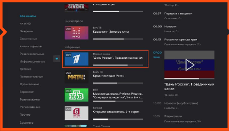 Это сотни ТВ каналов, тысячи любимых фильмов и сериалов, мультфильмы и развивающие передачи для малышей, а также множество других развлечений: Аудиокниги, Караоке, Концерты, Спорт&Фитнес, Блогеры