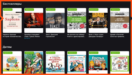 Доступно более 1000 аудиокниг от бестселлеров до нестареющей классики на любой вкус. На мобильных устройствах доступно прослушивание в фоновом режиме.