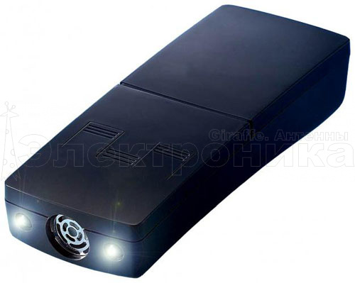 Ручной многофункциональный отпугиватель собак предназначен для защиты человека от укусов злобных собак. Он держит собаку на безопасном расстоянии, используя как излучение в направлении собаки ультразвуковых волн, так и вспышки сверхъярких светодиодов. Ультразвук неслышен человеком. Отпугиватель может работать и как мощный фонарь - для этого предусмотрена отдельная кнопка. Также прибор имеет функцию тренировки собаки для запоминания ею голосовых или знаковых команд хозяина. Ручной многофункциональный отпугиватель собак предназначен для защиты человека от укусов злобных собак. Он держит собаку на безопасном расстоянии, используя как излучение в направлении собаки ультразвуковых волн, так и вспышки сверхъярких светодиодов. Ультразвук неслышен человеком. Отпугиватель может работать и как мощный фонарь - для этого предусмотрена отдельная кнопка. Также прибор имеет функцию тренировки собаки для запоминания ею голосовых или знаковых команд хозяина. Использование: При угрозе нападения направьте устройство отверстием