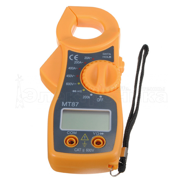 Диапазон измерения Переменного тока: 20А/ 200А/ 400А; Переменного напряжения: 450В, разрешение 1В; Постоянного напряжения: 600В, разрешение 1В; Сопротивления: 2кОм/ 200кОм. Защита от перегрузки. Входное сопротивление: 9Мом. Тестирование диодов. Звуковая прозвонка, менее 75Ом. Максимальное раскрытие клещей: 23мм. Автоматическая полярность. Индикация перегрузки. Электропитание: 2 х 1.5В ААА. Индикация разряда батарей. Шкала значений: 1999. Размеры прибора: 150 х 63 х 28мм. Вес: 145г.