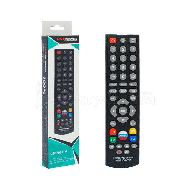 Аксессуары для телевизоров, Пульты Универсальные для ТВ и приставок, Пульт Д/у универсальный для триколор Live-Power GS8306+TV