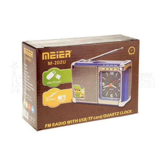 FM: 88-108 MHz Разъёмы: USB, TF(до 32Гб), AUX Питание: аккумулятор 18650 (1200мАh) - в комплете/ BL-5C - в комплект не входит Шнур ЗУ miniUSB в комплекте Аналоговые часы Размер: 15 х 9 х 4.5 см