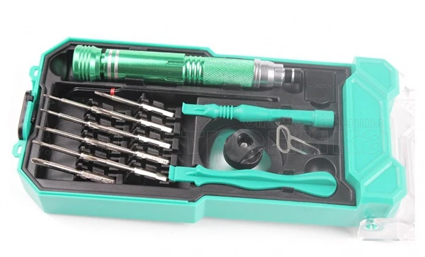 В наборе 1 отвёртка длиной 11,5см и 10 насадок: 1) Пятиконечная звезда 1.2 x 20мм 2)Пятиконечная звезда 0.8 x 20мм 3) T6 x 20мм 4) T5 x 20мм 5) T2 x 20мм 6) Крестовая 1.5 х 20мм 7) Крестовая 2.5 х 20мм 8) Плоская 2.0 х 20мм 9) Плоская 1.5 х 20мм 10)Трёхконусная 0.6 х 20мм Присоска Пинцет Инструменты для вскрытия корпусов 2шт Скрепка