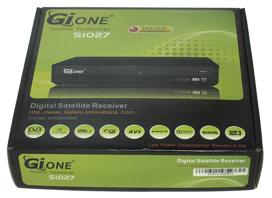 Спутниковый ресивер Gi S1027 можно подключить практически ко всем стандартным телевизорам, для этого у него предусмотрены разъемы - RCA «тюльпаны». Причем дополнительно имеется также коаксиальный цифровой выход звука, что позволит вывести объемное звуковое сопровождение каналов через домашний кинотеатр.